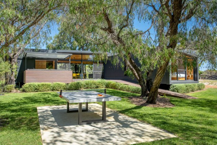 Paul and Wendy’s brief: to save as many of the property’s old peppies as possible, and work with its existing topography to create a home that exudes “holiday”.