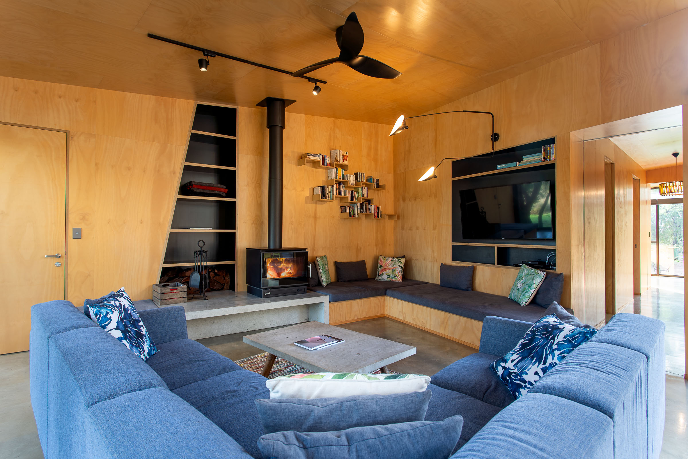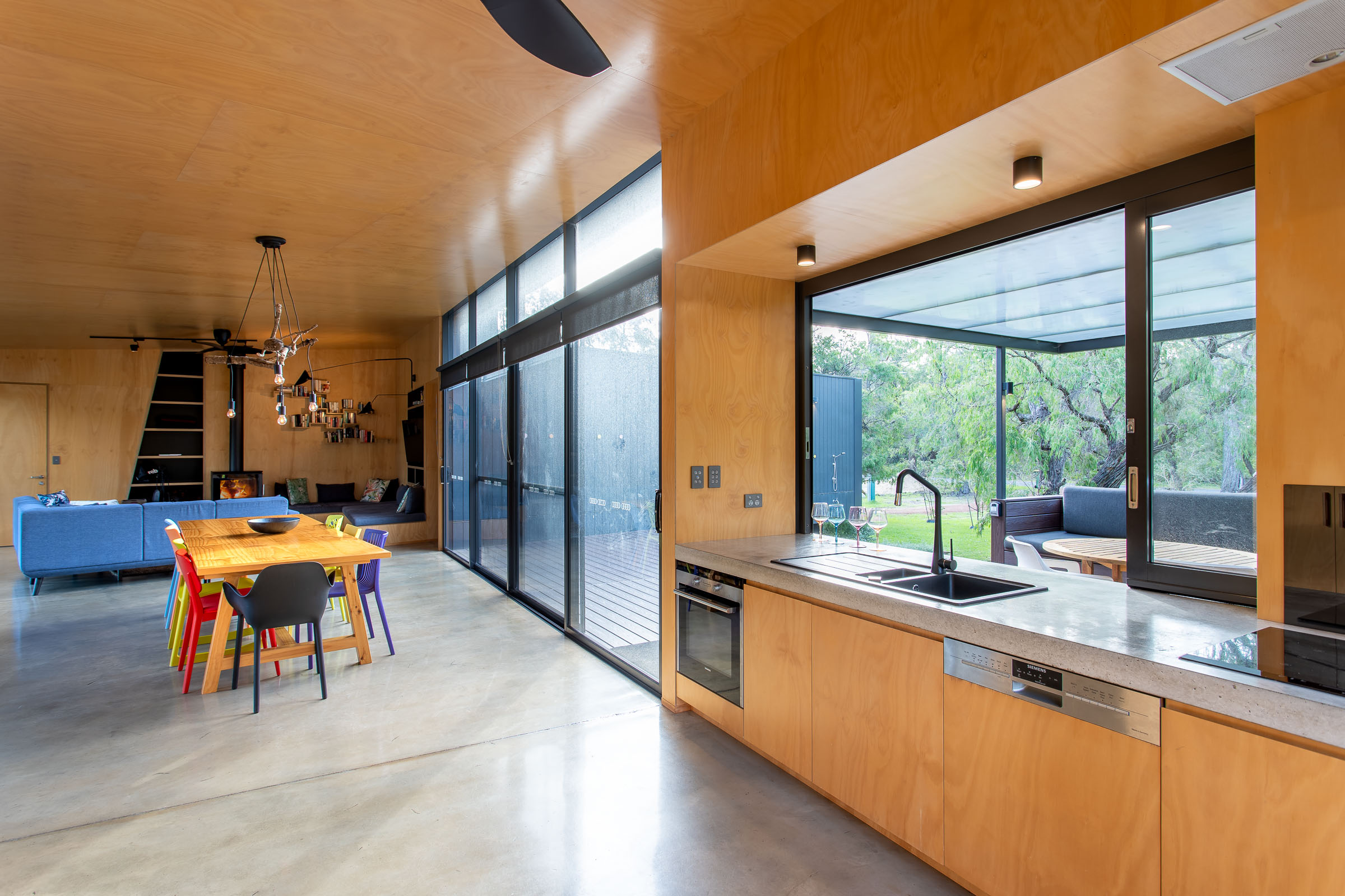 Lots of wood and charcoal tones also means this non-traditional beach abode fits perfectly into its surroundings; across the road from the beach in Dunsborough with views over Toby Inlet at the back. It's unique name, 82 Degrees comes from the most prominent angle in the house.
