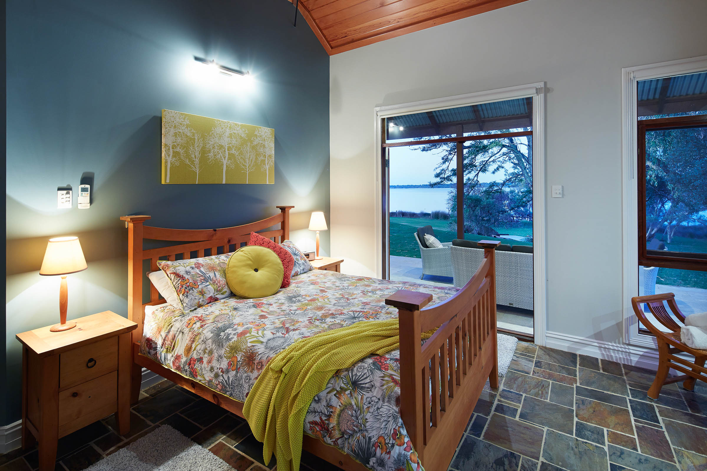 Inside, find a mix of country-contemporary furnishings that complement the home’s original limestone exterior. Little nods to the home’s 100-year-old lineage – a stained glass “Allandale” window sits above the front door and copies of old canning labels and photos from the Dawes family album sit proudly on rendered and limestone walls – can also be found throughout the homestead, which still has the same idyllic, uninterrupted view of the estuary it had when it was first built all those years ago.