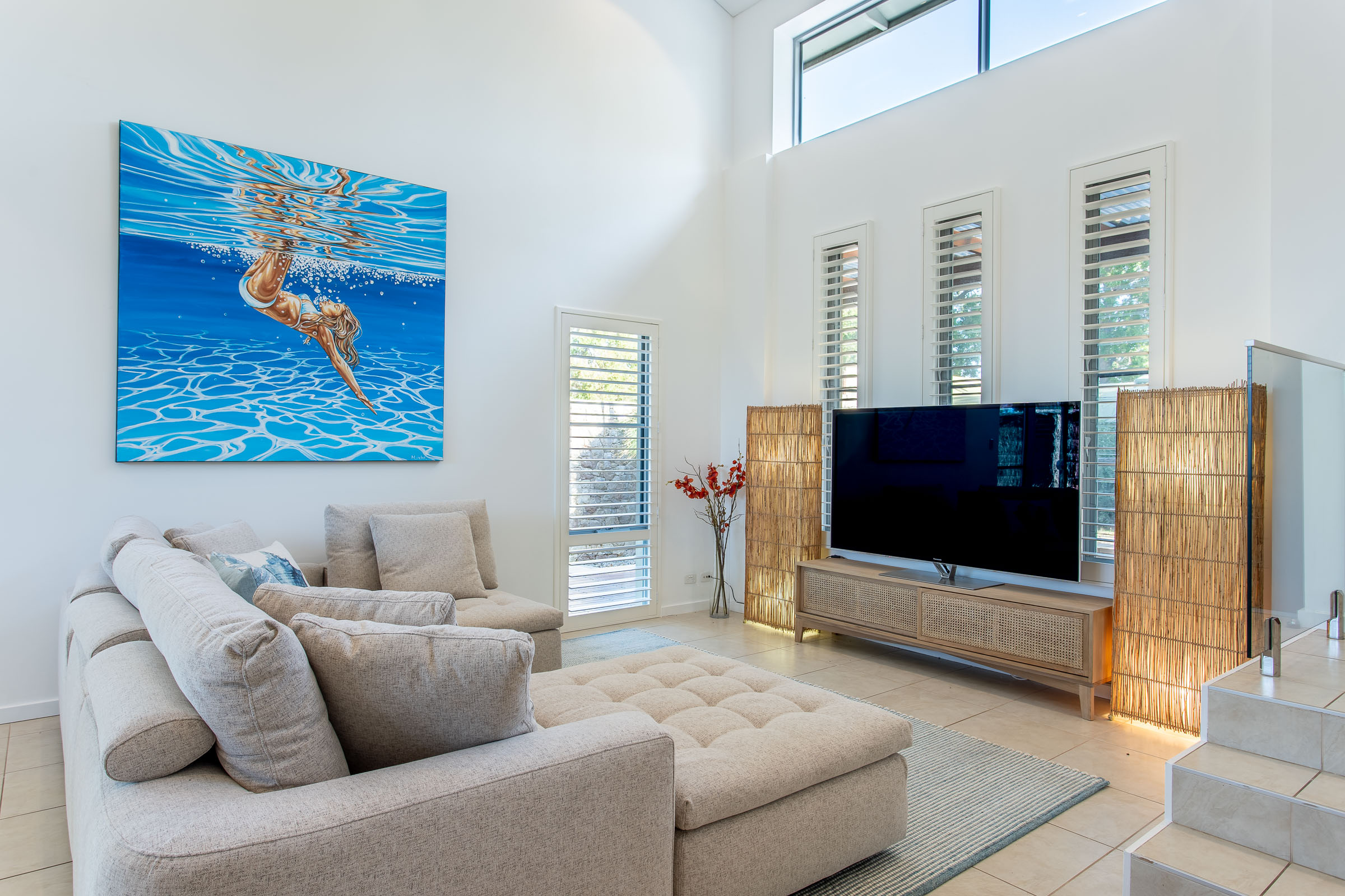 Fall asleep to the rhythmic sound of the water lapping at the shore and the whisper of the sea breeze from the upper level master bedroom. When you wake, take a wander onto the balcony and absorb the view over a leisurely brunch while you decide what to do for the day. Downstairs, there are two more bedrooms, shared bathroom, open plan living, kitchen and dining area and alfresco entertainment deck where you can reach out and nearly touch the bay. Plus there’s the creature comforts with reverse cycle A/C , two smart Apple TVs and a Nespresso machine for that morning pick-me-up.