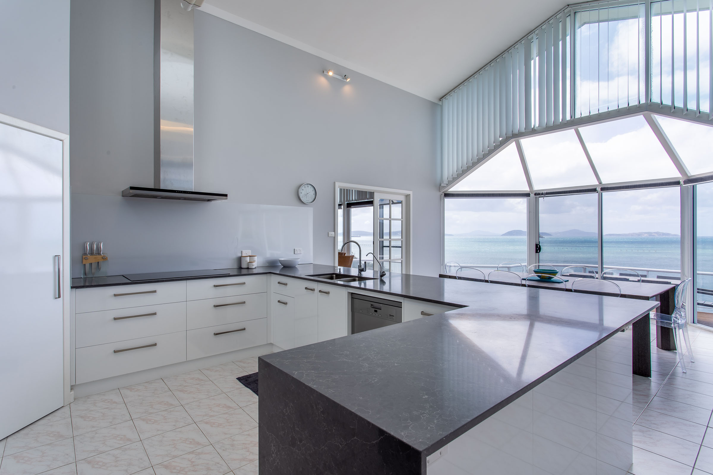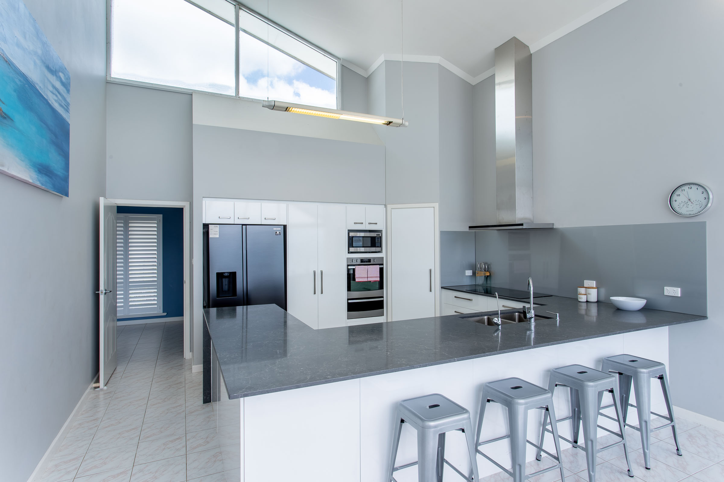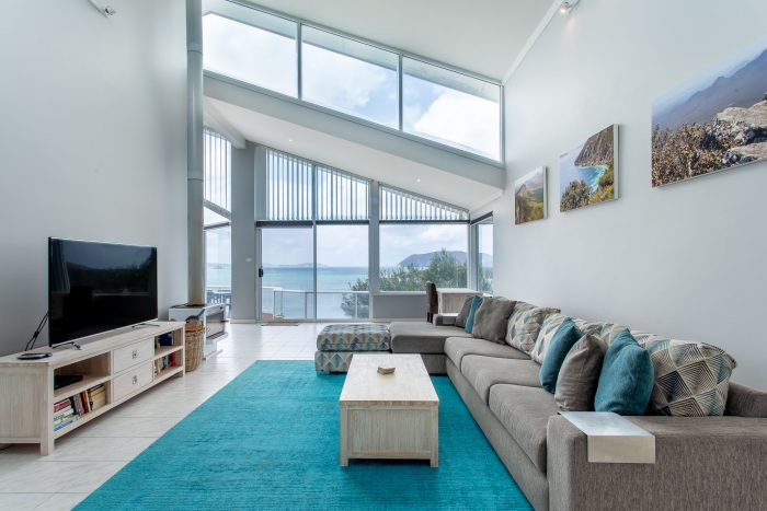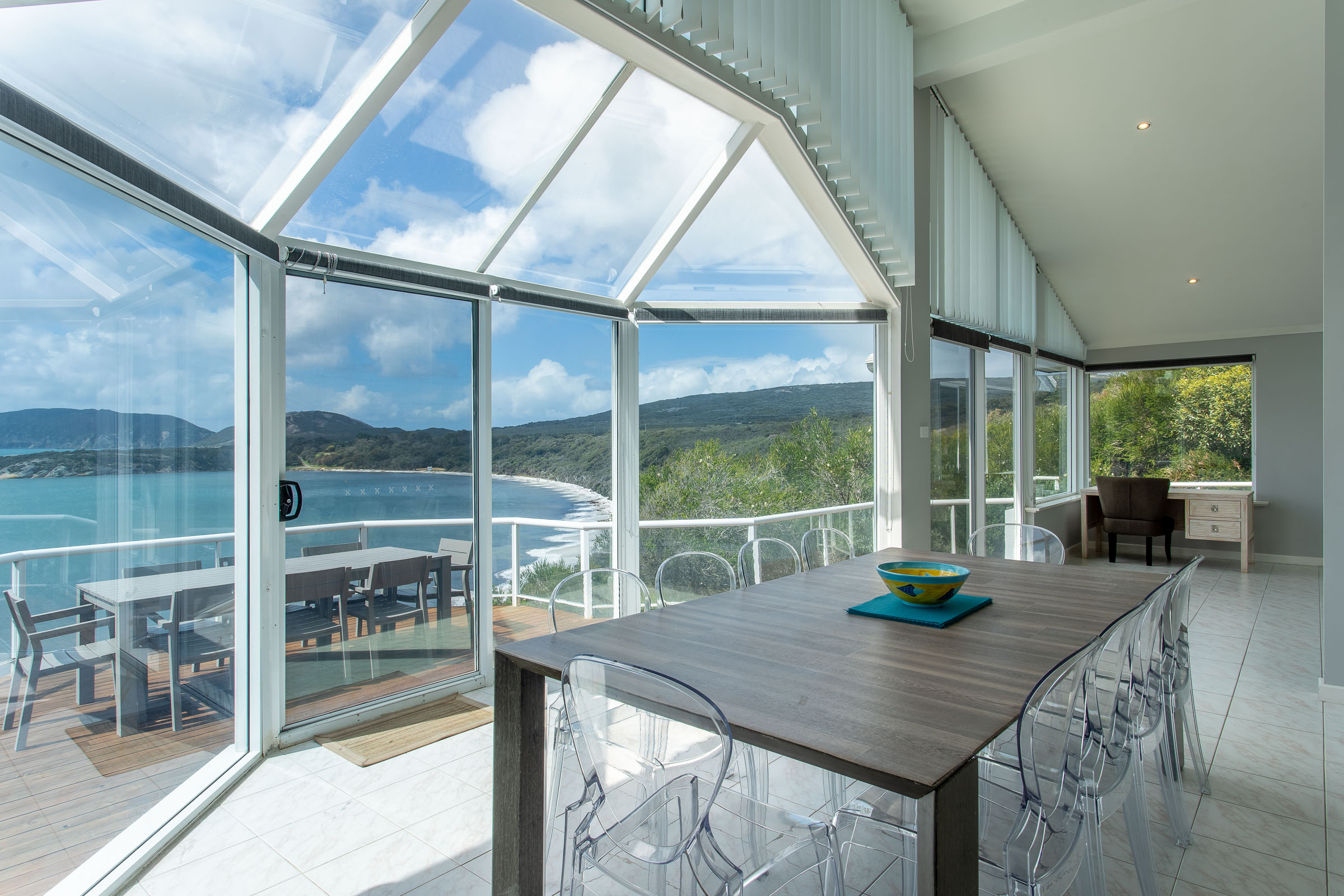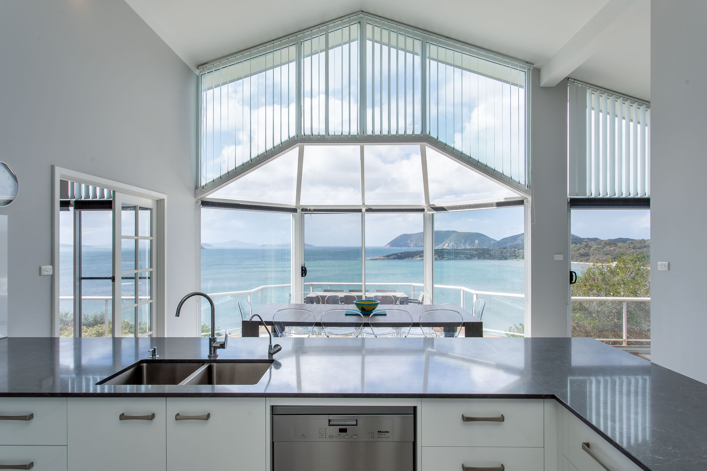 Vast floor to ceiling glass in the open-plan kitchen, dining and living areas capture the panoramic sea views plus the chance to see whales during several months of the year. Breaksea is a house for all seasons - enjoy warm summer days with the lure of the turquoise water below or witness the winter storms rolling across the ocean.