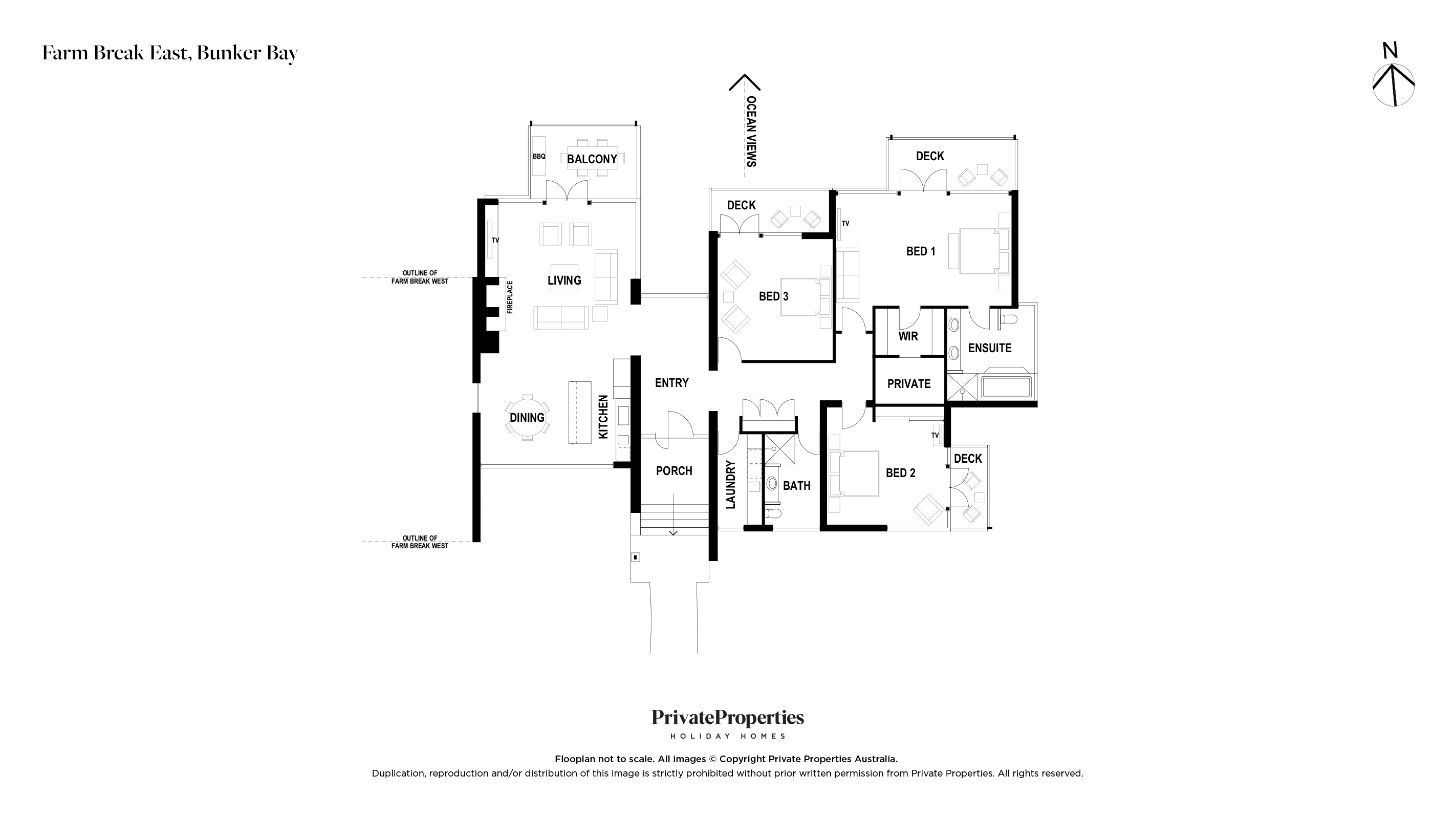 In need of a break? We’ve got the perfect place in mind – Farm Break East. One of two spectacular, three-bedroom bungalow-style villas, Farm Break East is situated above the idyllic shores of Bunker Bay on 180 acres of native bush and farmland.