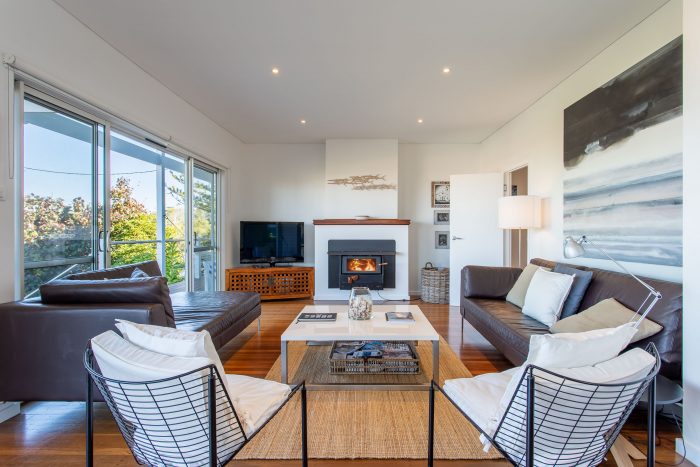Winter visits to Nikabel are sure to be wonderful, thanks to the home's cosy wood fire and its big windows for watching the storms rolling in.