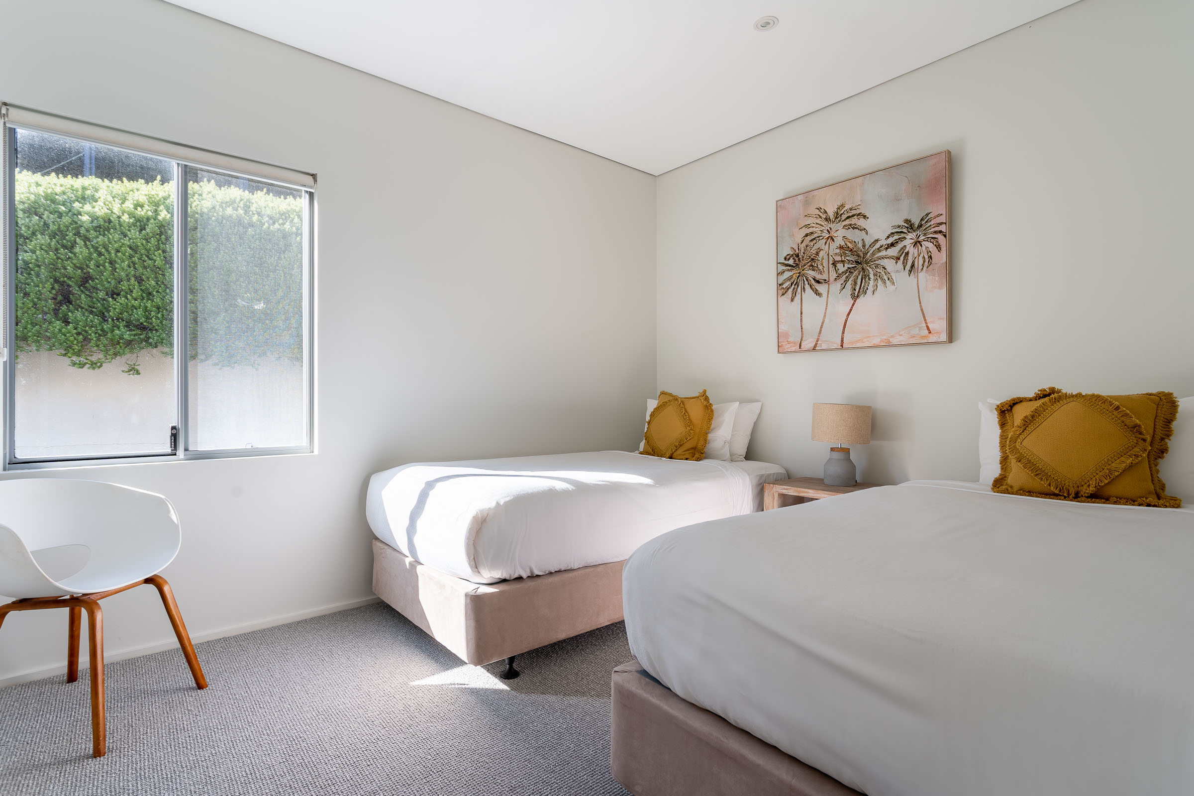 The second living room also has water views plus the comfort of a cosy gas wood-look fireplace for the cooler months. The three minor bedrooms, third bathroom and study nook are also on this level.