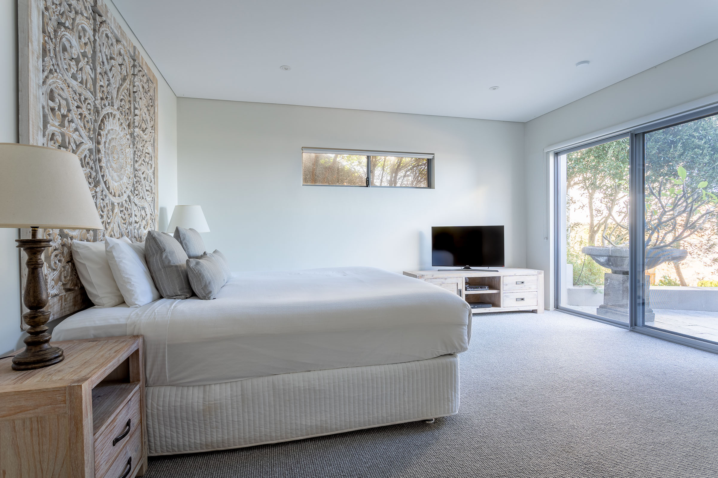 This hillside beauty not only boasts floor to ceiling windows that frame the stunning coastal views — south to Main Break and north to Sugarloaf Rock — its shimmering plunge pool, will tempt you all day long.
