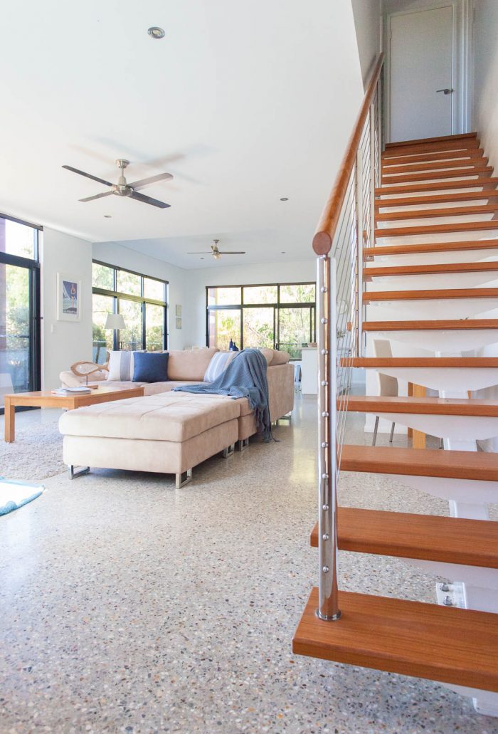 A simple interior aesthetic – think polished concrete floors, limestone feature walls and timber accents – allows you to make each of the home’s spaces yours.