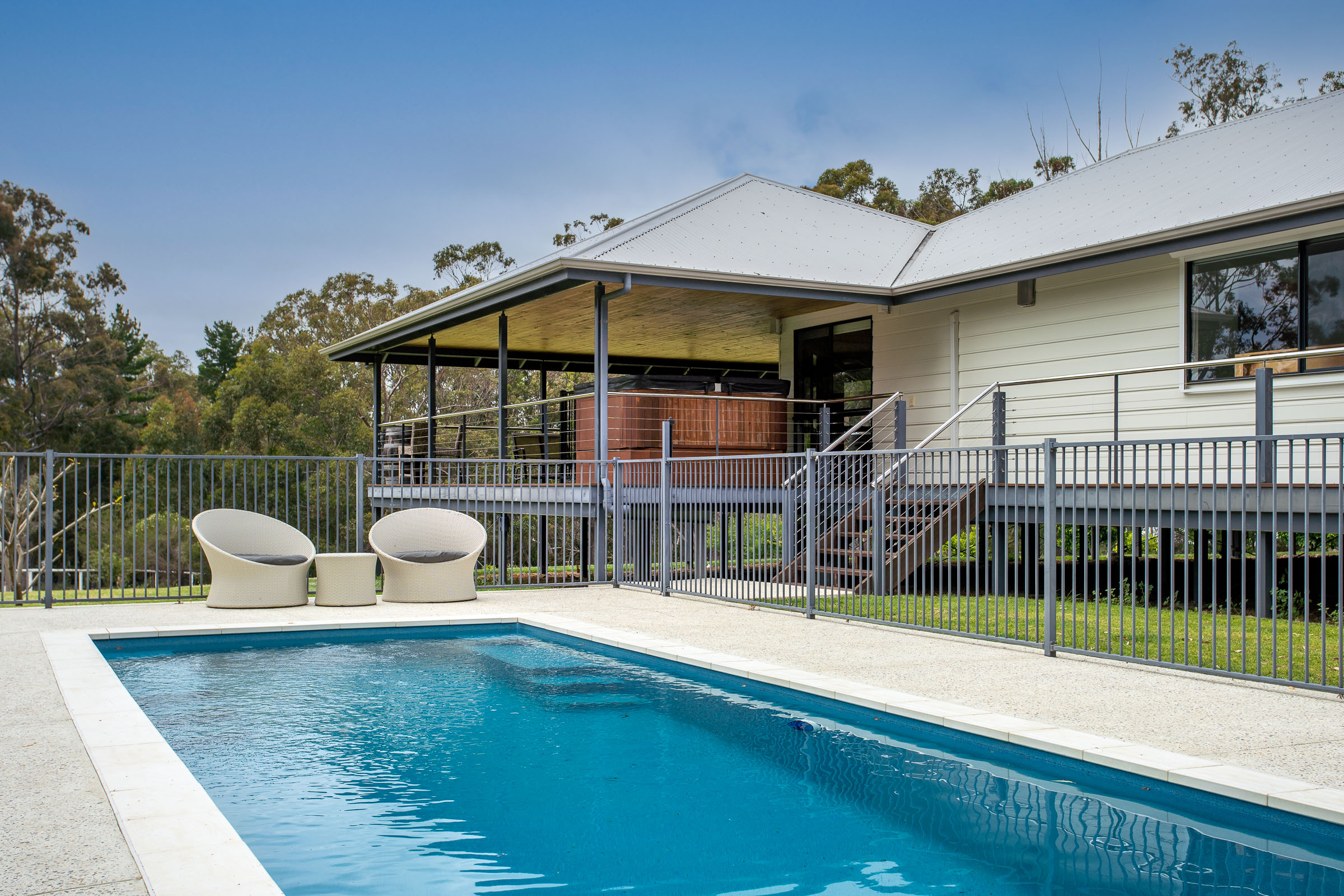 Shaded elevated decks wrap around most sides of this single-level home, making it so easy to appreciate the hillside views from all living areas. Sliding doors from the open-plan kitchen/dining/lounge area open out to a large entertaining area with views to the pool.  This deck also features a six-person heated spa, plus several separate seating areas, for curling up in a chair and reading a book.