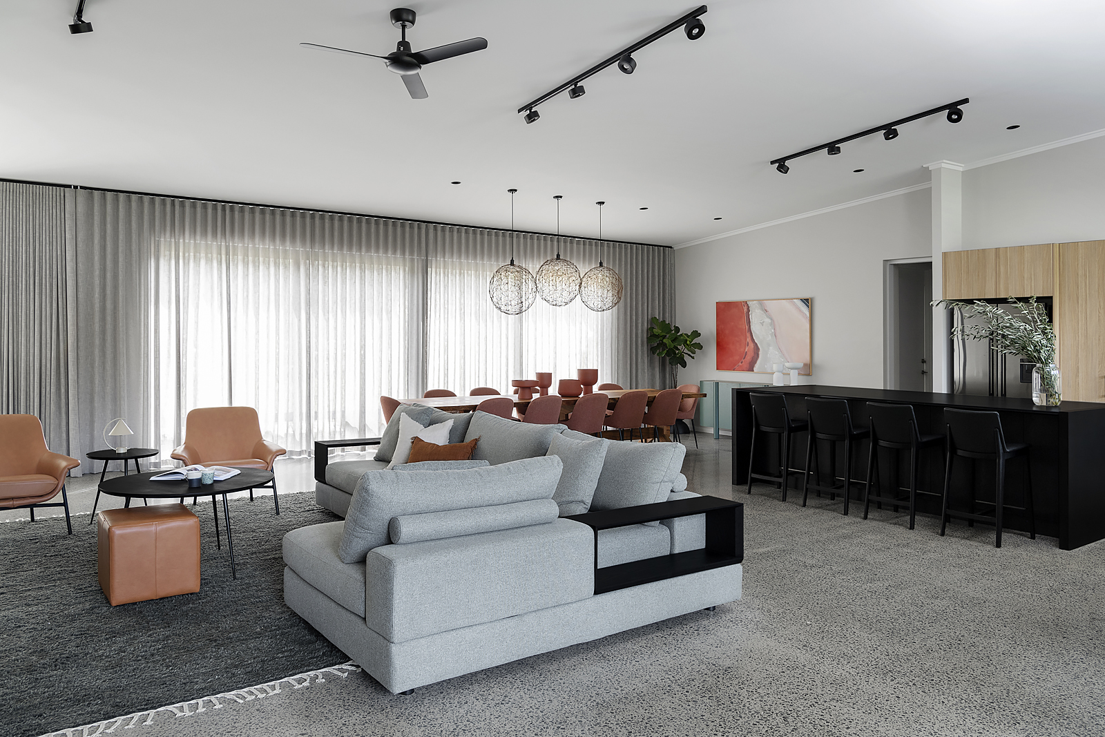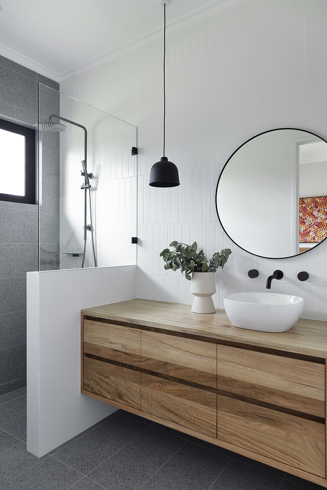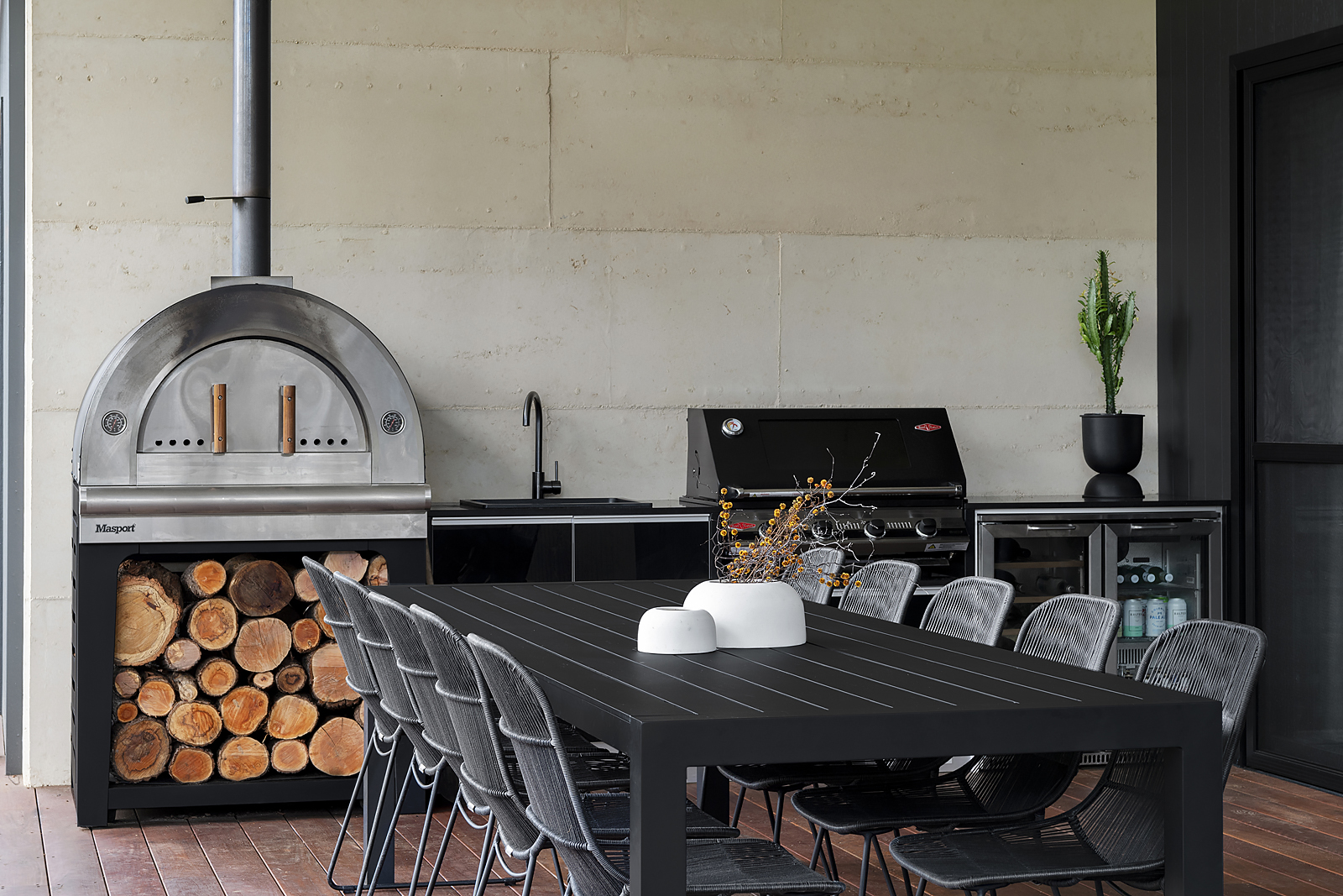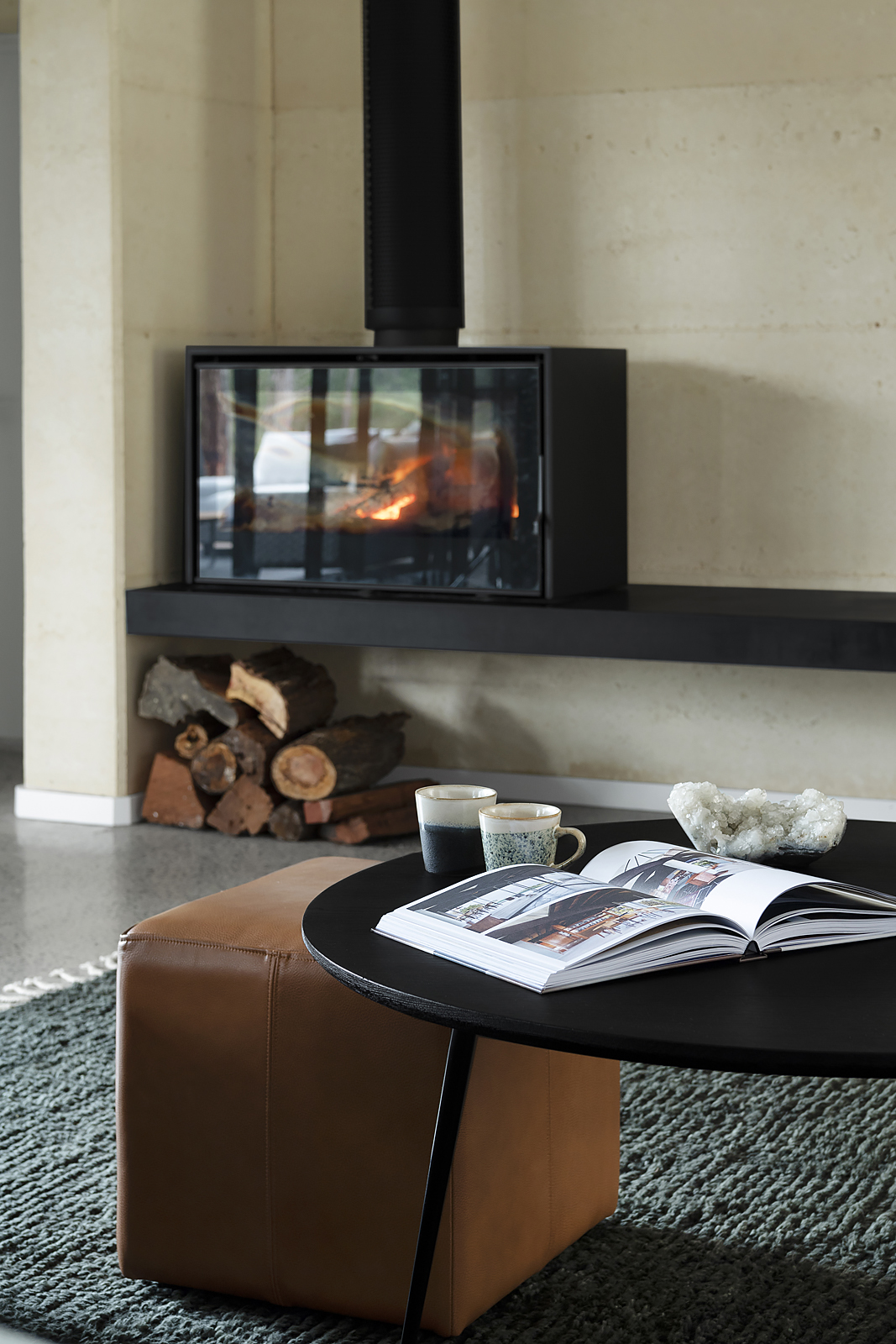 Bright, sun-dappled spaces are complemented by a sleek material palette, plush soft furnishings and pops of colour – think pastel pinks, turquoise greens and earthy ochres. Enveloped by towering karri and marri trees, native plants, and a large dam with a trickling limestone water feature, the home feels miles away from anything (and anyone) else; a tranquil escape for those looking for a well-deserved break.