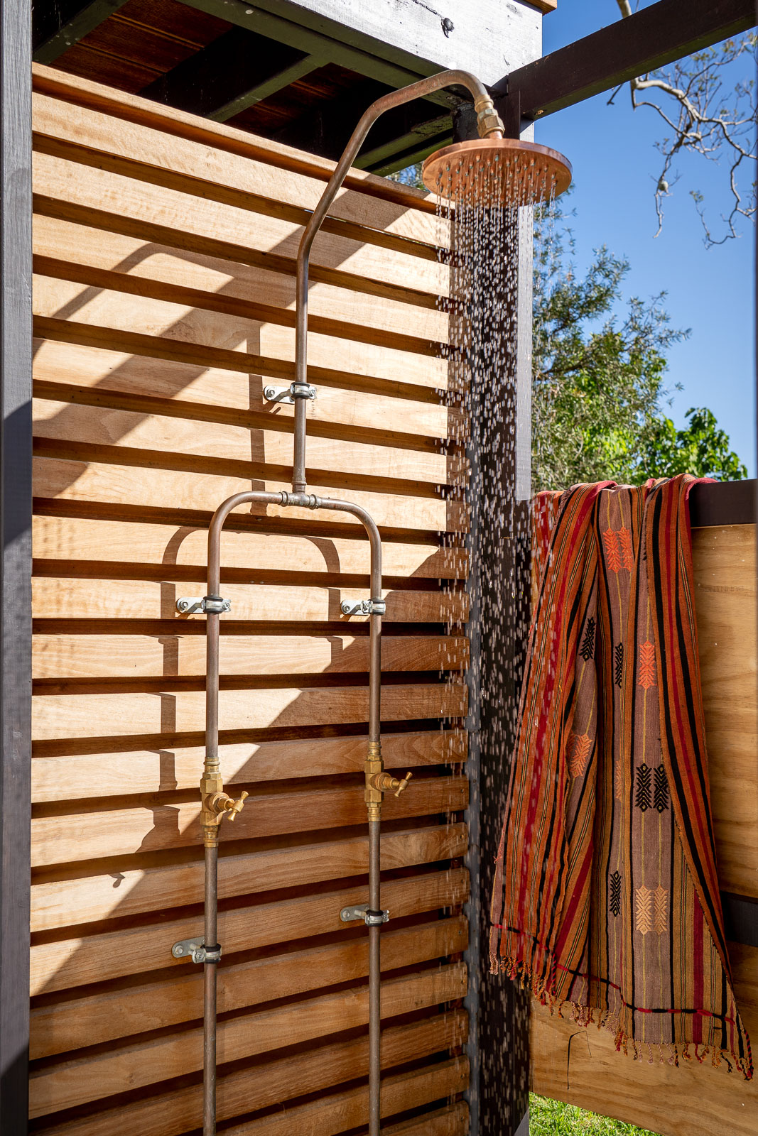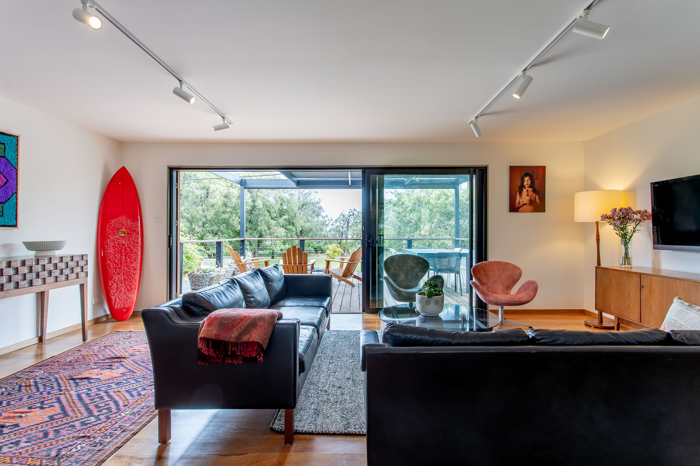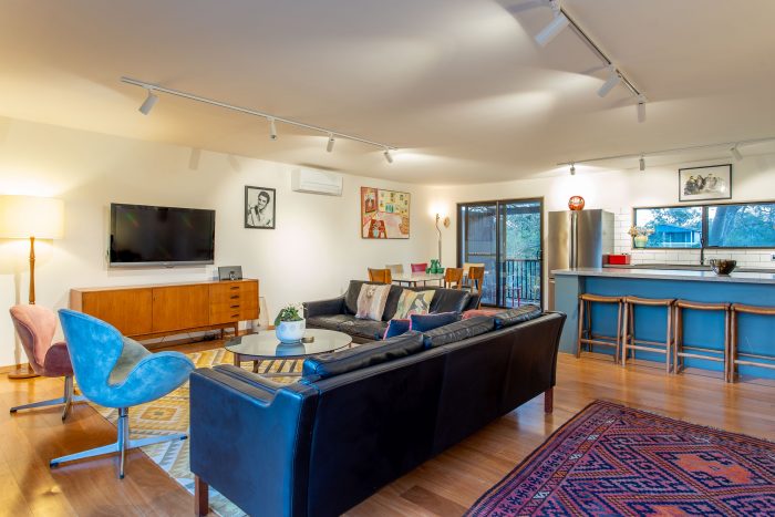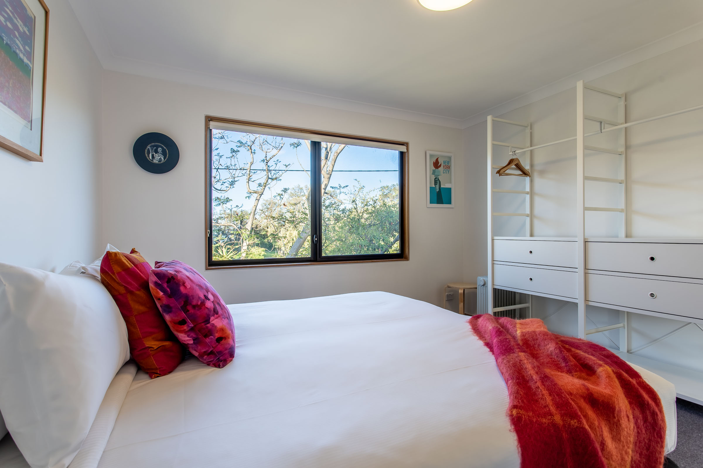 This two-storey home has a tasteful, eclectic style. Colourful vintage pieces give it a retro vibe, but you have all the modern amenities at your fingertips. There’s reverse cycle A/C, TV with live streaming and a heated outdoor shower to rinse off after a morning sunning yourself on the sand.