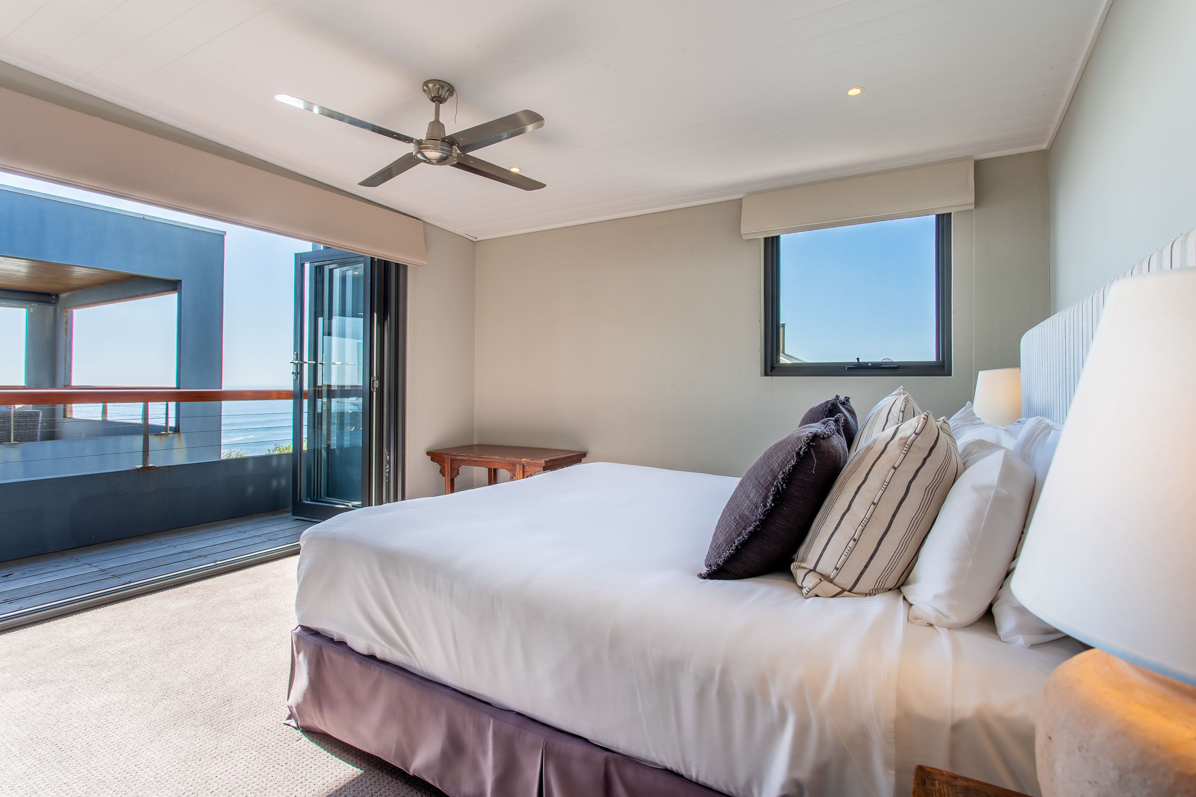 On the ground level, the open plan living area flows effortlessly onto the deck via bifold doors, and it’s here you’ll find the main living rooms, and a separate TV room with kitchenette. Mid-level, there’s a bedroom, kitchen and laundry, plus access to the back garden, and on the top level you have three bedrooms and a lounge area. The master bedroom takes prime position with an enviable view that can easily be seen easily from your pillow. Just imagine waking up here and watching the surf.