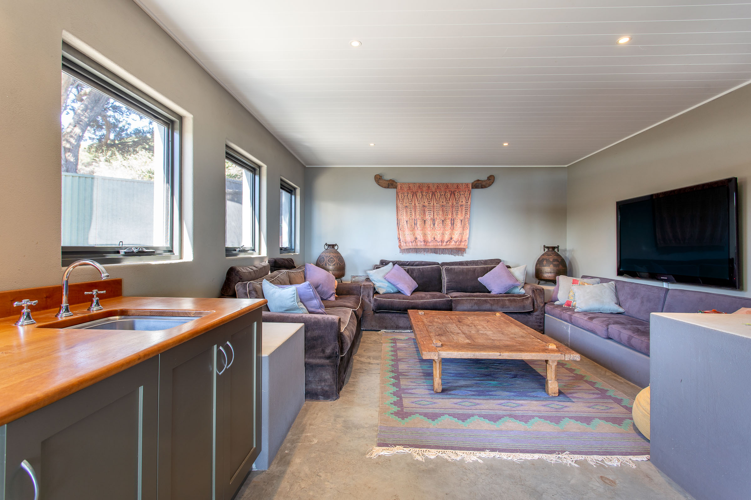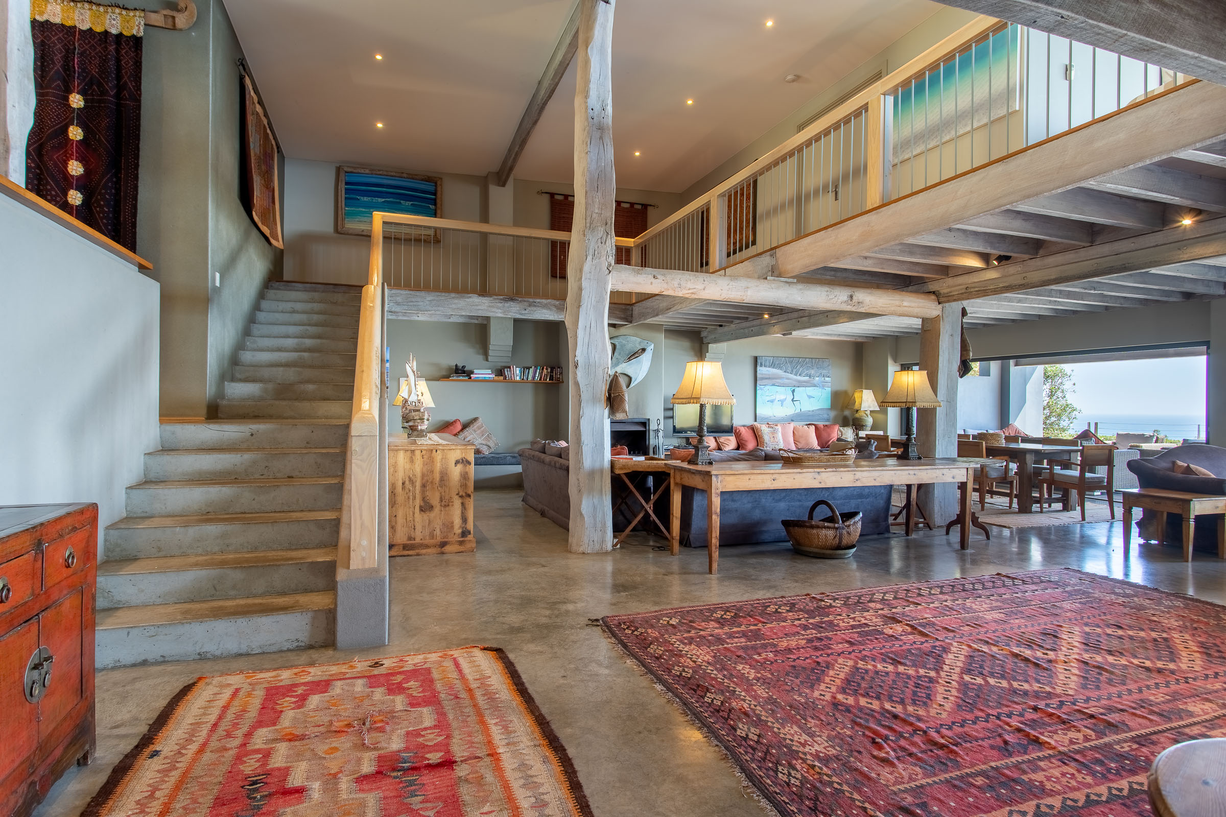 Perched high on Yallingup hill, The Lookout boasts a 180-degree panorama from Cape Naturaliste in the north to Canal Rocks in the south. There’s character in this home; a unique combination of cosy lodge and airy coastal retreat. On the one hand, there are exposed wood beams, a big collection of comfortable sofas, rugs in deep red and burnt orange, and a wood fire ready to crackle away. On the other, you have high ceilings, huge doors, and charming pops of nautical décor and beachy artwork which adds to the coastal ambience.