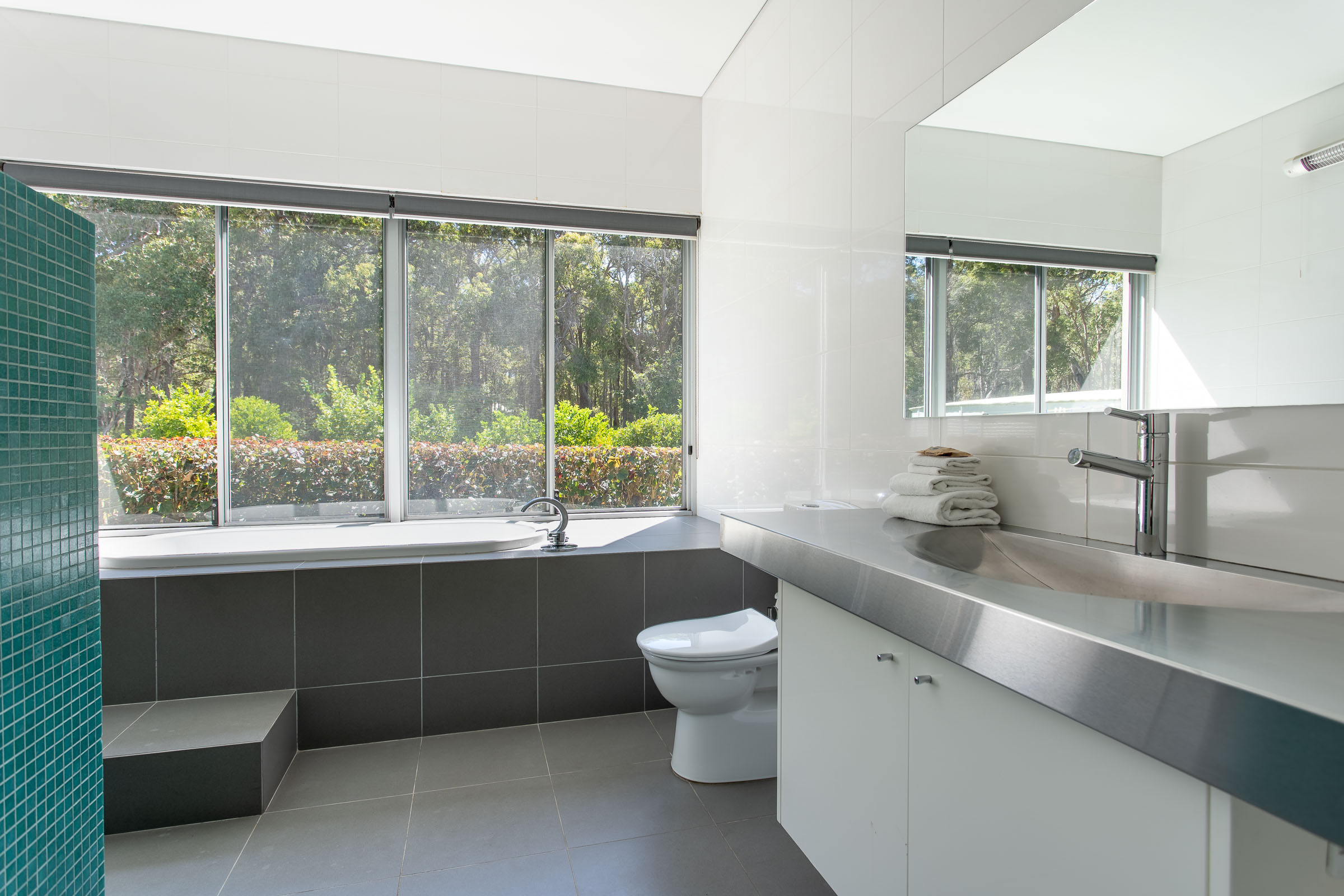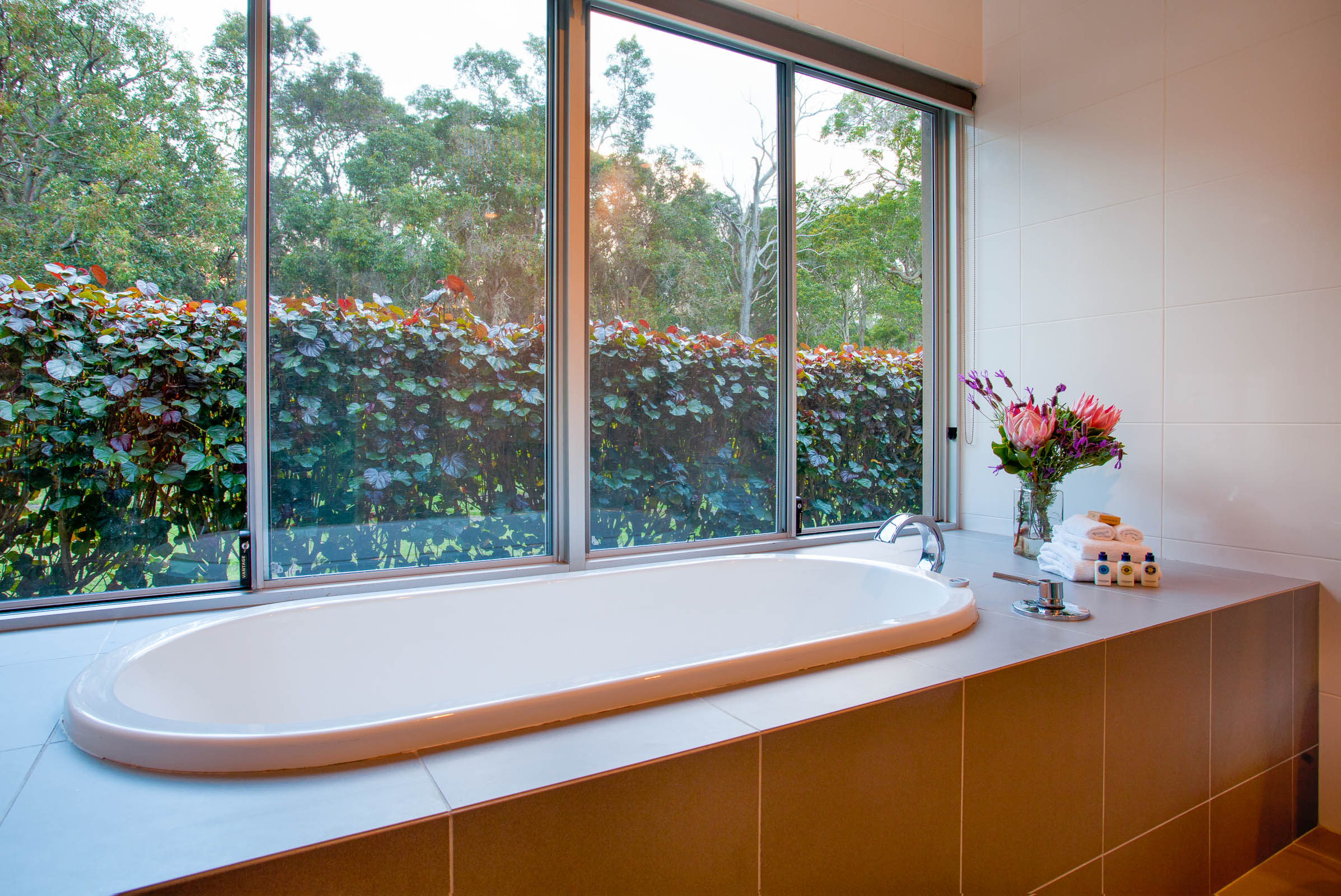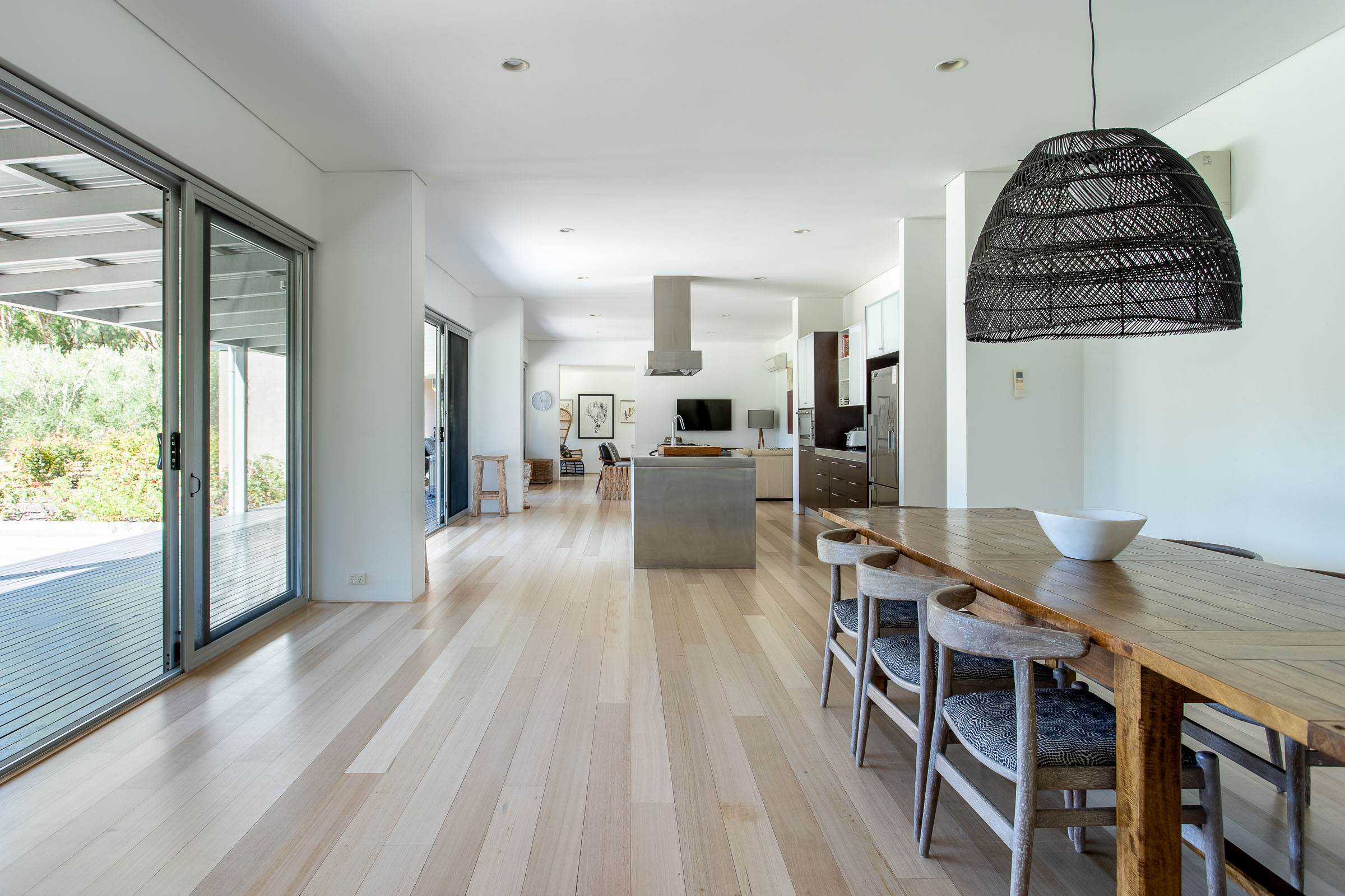 Wildwood Grove has two separate wings located at each end of the house, each with a private entrance. The bedrooms are spacious with built-in robes and reverse cycle air-conditioning, each opening onto a private deck with views of the natural surrounds. The bathrooms are sure to impress, with stainless steel vanities, heated towel rails, plus walk in shower and spa bath with views overlooking the gardens.