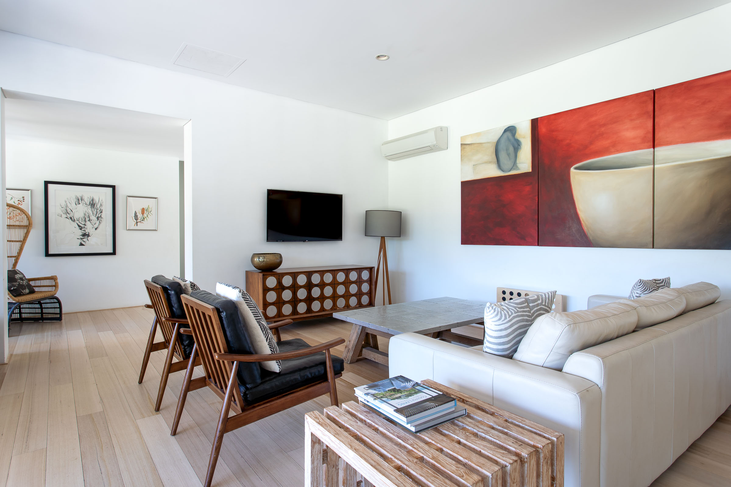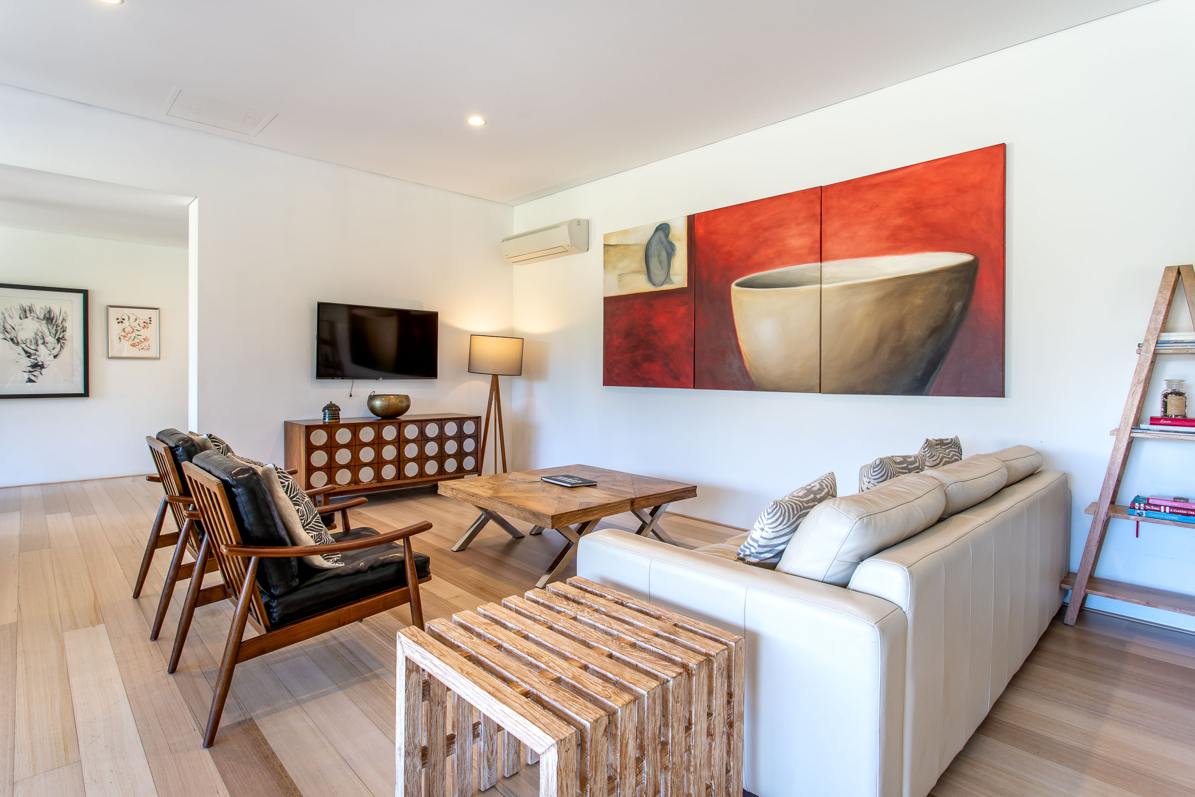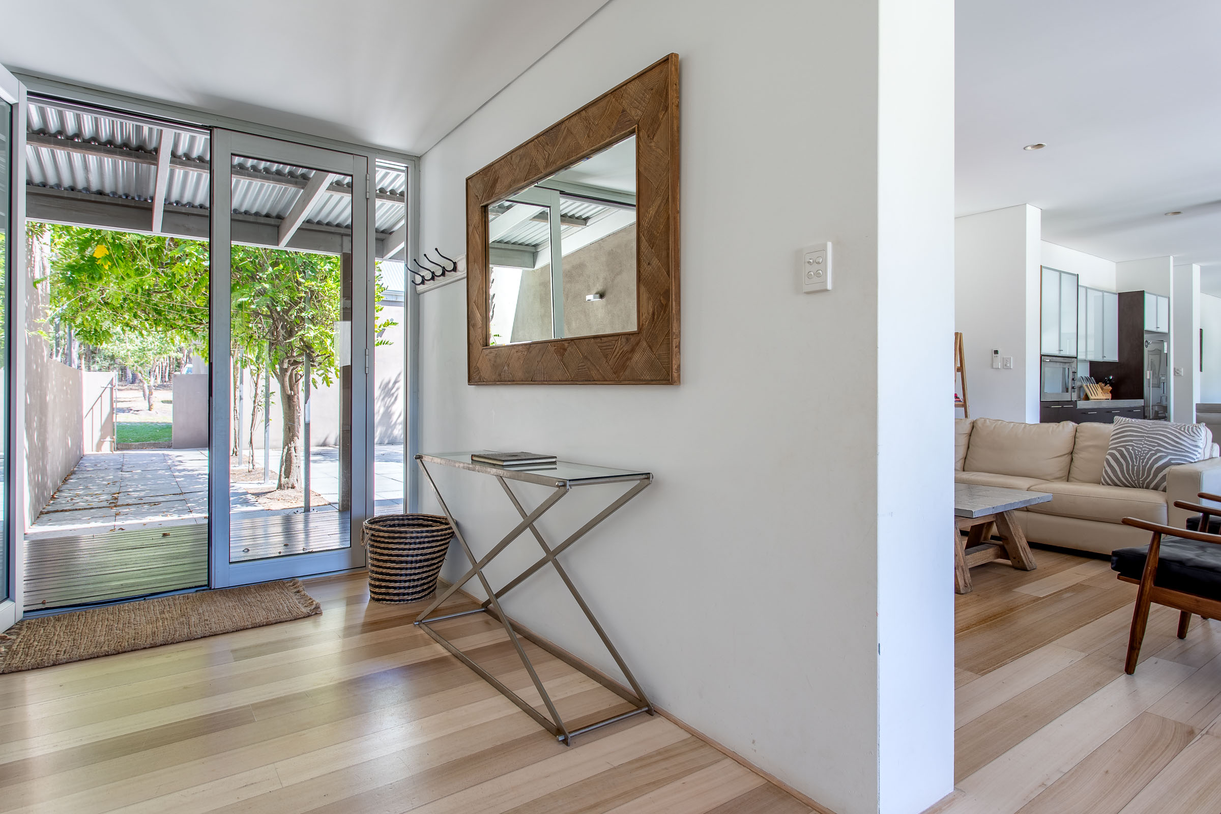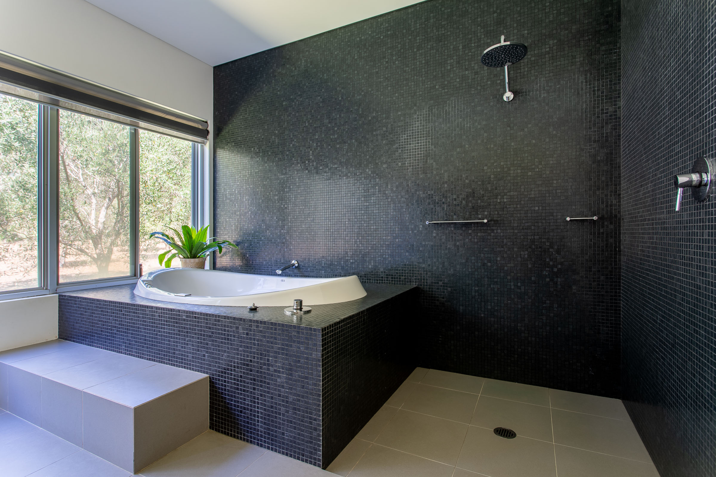 Wildwood Grove has two separate wings located at each end of the house, each with a private entrance. The bedrooms are spacious with built-in robes and reverse cycle air-conditioning, each opening onto a private deck with views of the natural surrounds. The bathrooms are sure to impress, with stainless steel vanities, heated towel rails, plus walk in shower and spa bath with views overlooking the gardens.