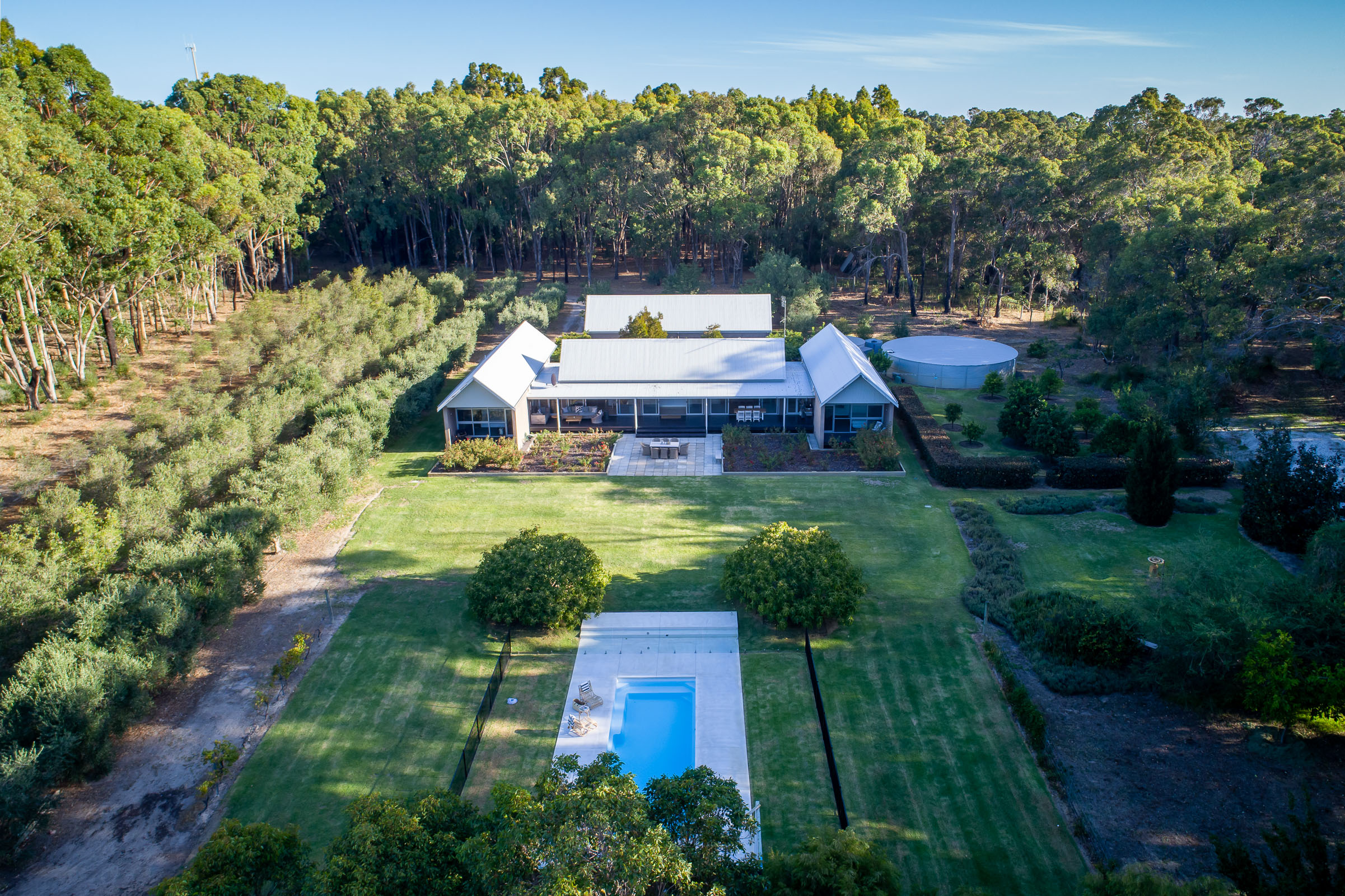 Situated amongst some of the best South-West wineries and just minutes away from iconic beaches, the peaceful country setting will delight and the extensive gardens will take your breath away. Surrounded by natural bushland replete with native flora and fauna, this seven-acre property features landscaped gardens and a stunning swimming pool.