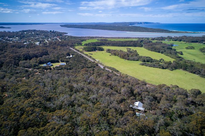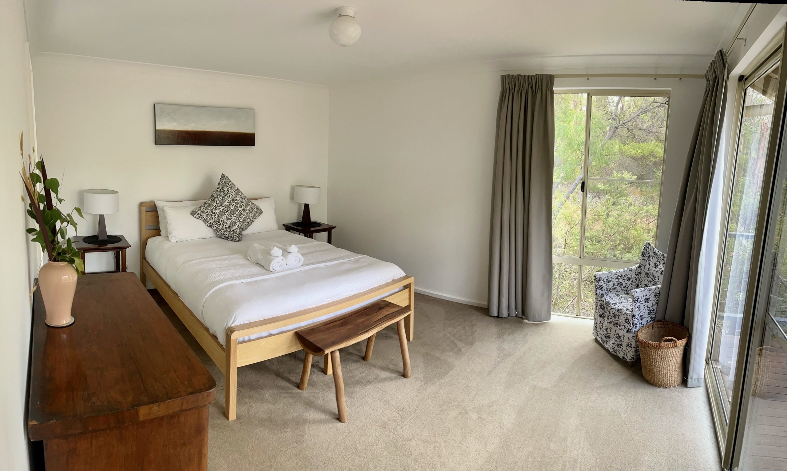 The house sits high up surrounded by trees giving you the feeling of nestling amongst the branches with stunning elevated views to the inlet and Southern Ocean. Look over the sprawling five acres of bush and you will surely spot some Spring wildflowers and native animals, including kangaroos and birds.